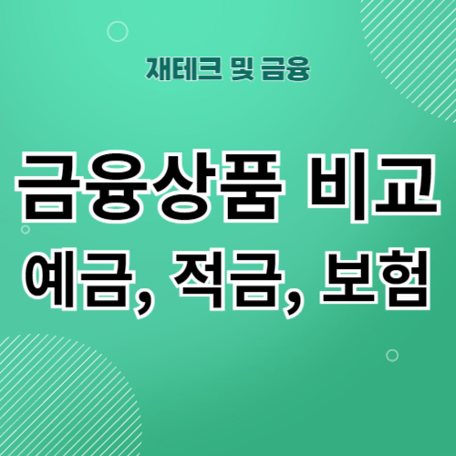 종류정기예금, 보통예금정기적금, 자유적금생명보험, 손해보험,